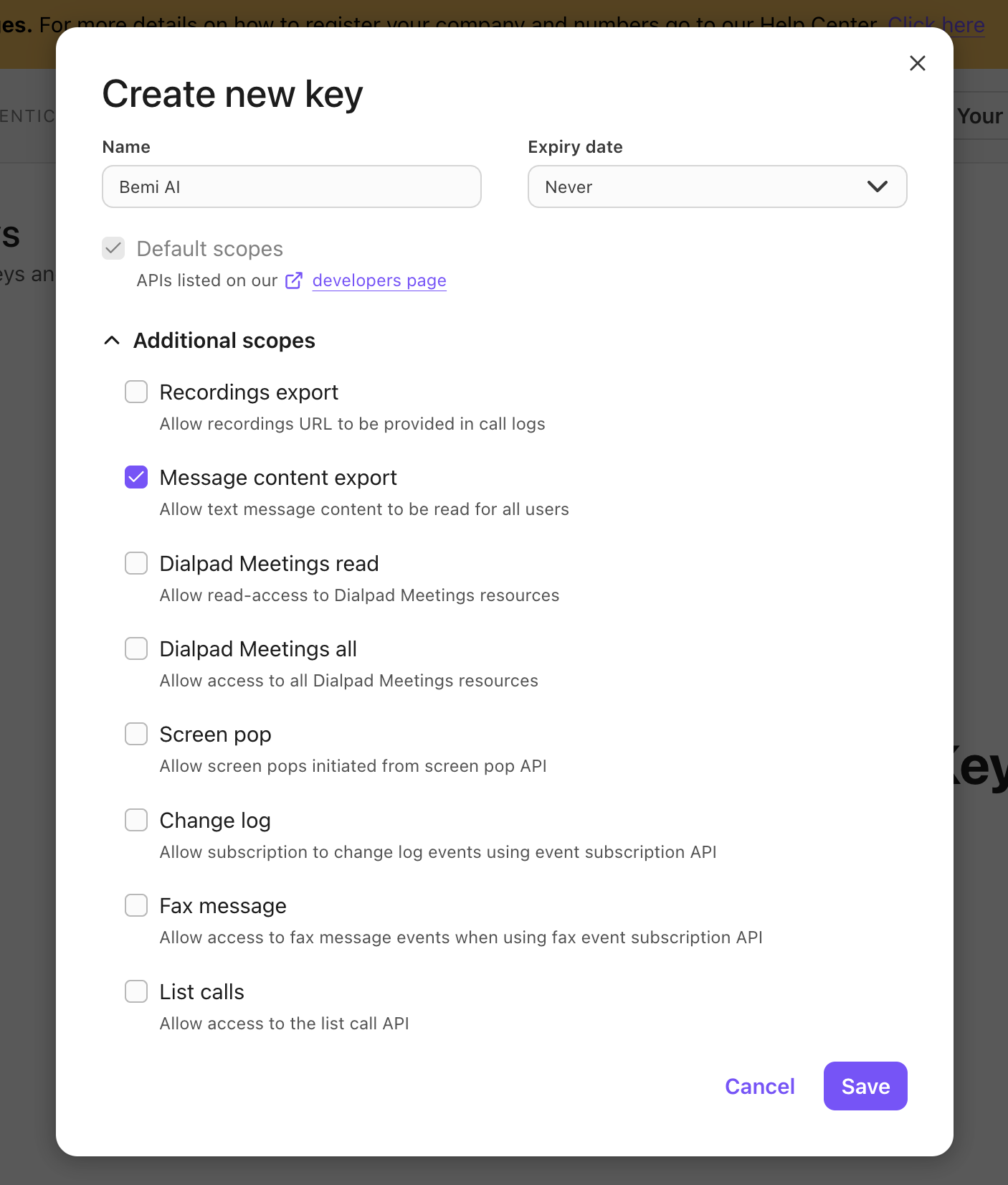 Step 1: Create Dialpad API Key