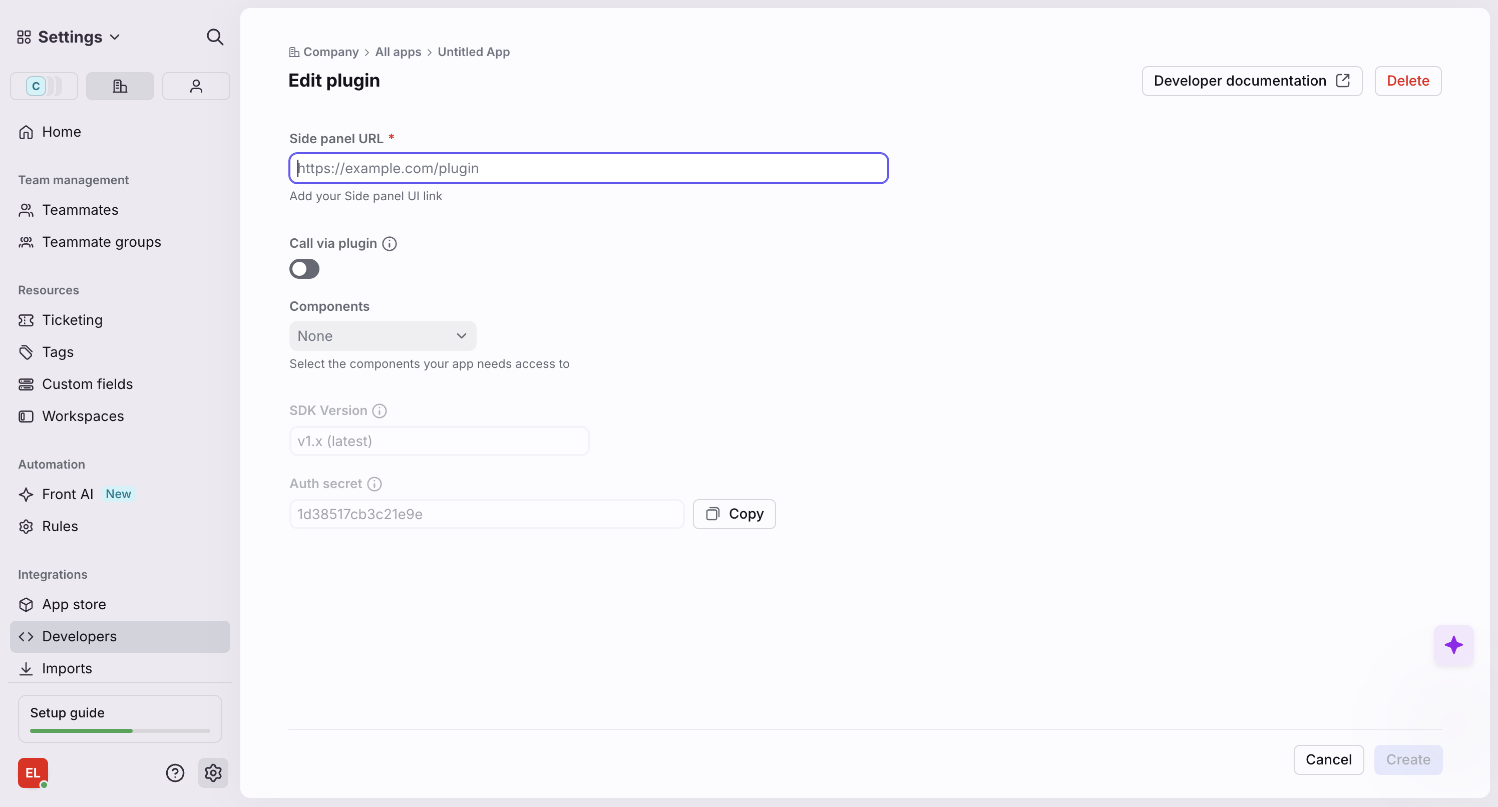 Step 1: Create a Front App