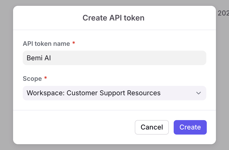 - Enter Telio as the name for the token and select Workspace: [YOUR_WORKSPACE] Resources as the scope.