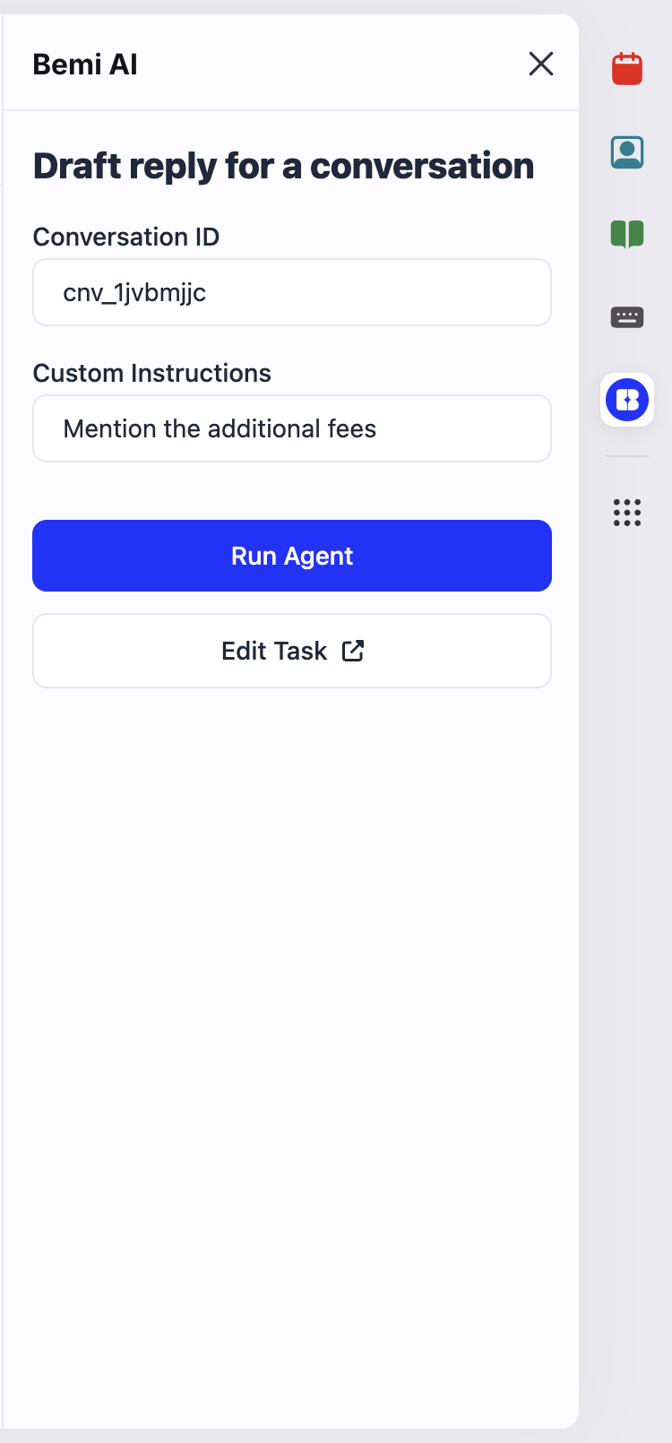 You can enable the Telio sidebar in Front to interact with your AI agents directly within the Front interface.