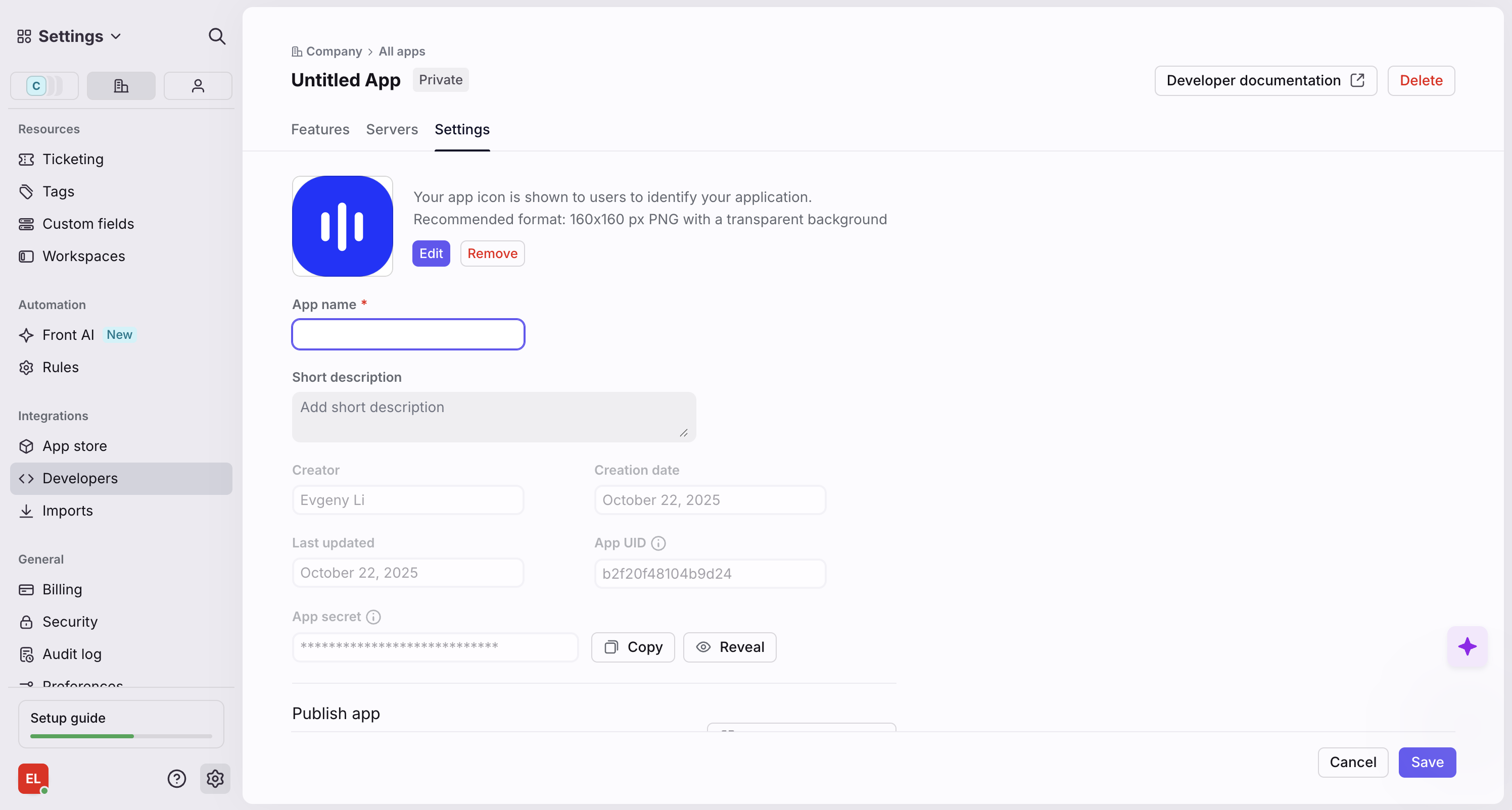 Step 1: Create a Front App
